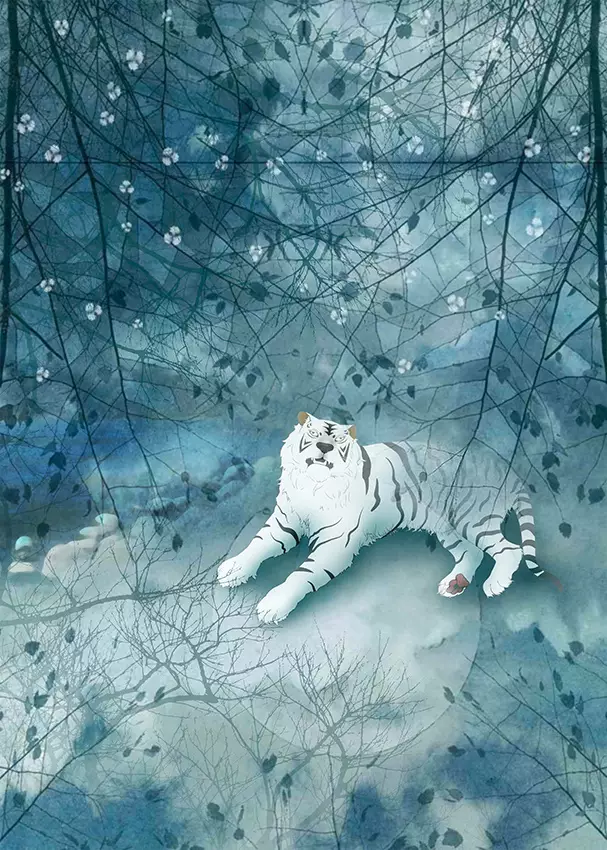 男孩在七岁的时候第一次看见老虎。厚厚的落叶遮掩了大部分躯干,帮着村里人采药的小男孩走过去,才发现那翻着的雪白肚皮还有微弱的起伏。