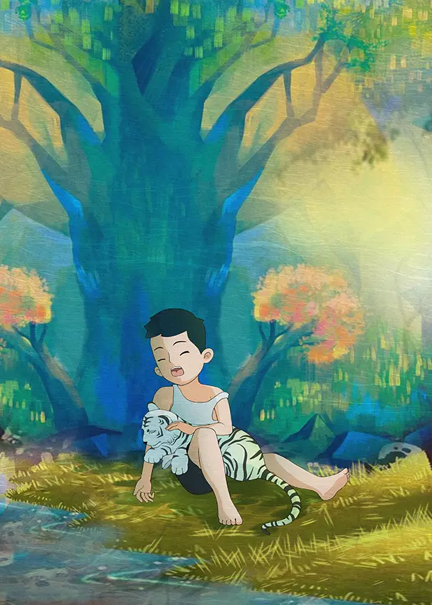 几年以后的一个清晨,人们被男孩惊喜的叫声吵醒。他们看见,老虎倒下的地方涌出清泉,汇成了小溪。
